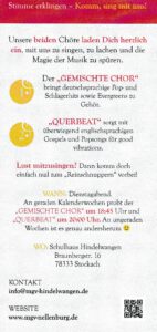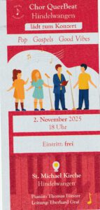Konzert Chor QuerBeat Sonntag 02.11.2025 18 Uhr Kirche St.Michael Hindelwangen Eintritt frei – Spenden erwünscht